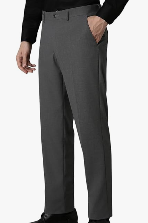 Louis Philippe Men's regular-fit formal trousers combine style and comfort for everyday wear. Made with stretchable fabric, they offer ease of movement, a polished solid design, and a smart, work-ready look perfect for office and formal occasions.