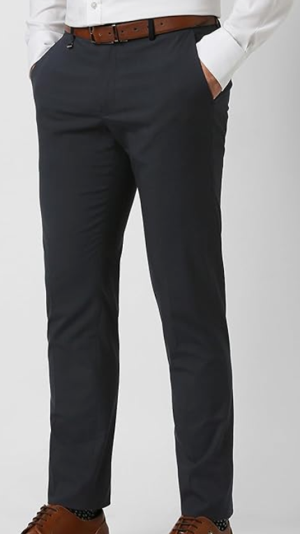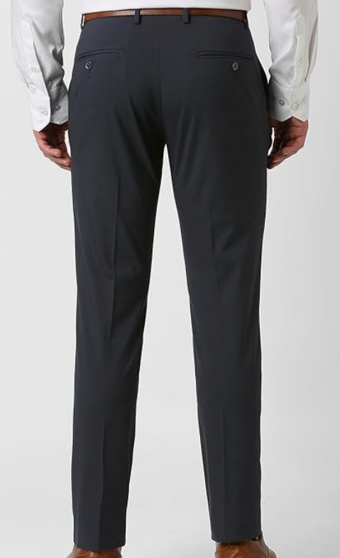 Van Heusen Men's mid-rise slim-fit formal trousers offer a polished, modern look with superior comfort. Featuring a soft-touch fabric and an auto-flex waistband, these premium trousers combine style and ease for all-day wear in office or formal settings.